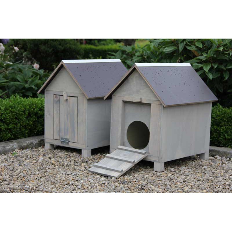 Dak is afneembaar, hok afsluitbaar.